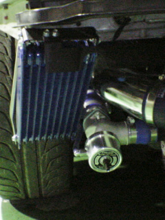 製作前の、GT2530ツイン600ps仕様の段階でも油温が上がり気味と言う事で、トラストオイルクーラーコア13段と10段のワンオフ2基掛け(移動エレメントタイプ)にしてみました。※フィッティングは♯10です