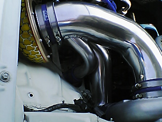 右インナーフェンダーにオイルクーラーコアを設置すると、純正ブローオフバルブが撤去されてしまう為、トラストタイプRを使用してサクションパイプ戻しまでをワンオフ配管で製作しました。