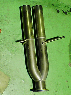 マフラーのリヤピース部分の手直しですが、仕様的には画像のように2種類の出口を楽しめるように製作されていましたが、右側の差込タイプになっている部分が回ってしまうと言う事で1本物になるように溶接加工しました。