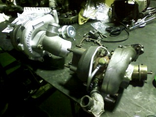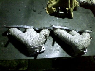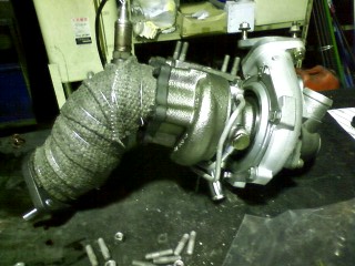 まずはエキゾーストマニホールド、タービンアウトレット、に耐熱布を巻きタービンを組み付けます。