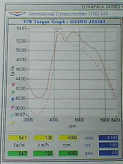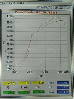 パワー409.6PS(シャシ上で1番のピークパワーは417.1PSでした)トルク54.7Kでした!低中速トルクも太り、ピークパワーも上がりました。