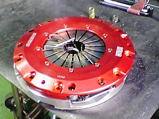そしてニスモカッパーツインクラッチ、クスコRS LSD、プロジェクトμブレーキローター、パッド、ホース、を組み付けます。