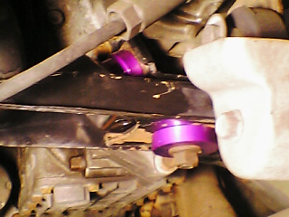 こちら強化エンジンマウントですが、ノーマルエンジンマウント高さよりも10mm低いタイプを装着して、重心を下げます。