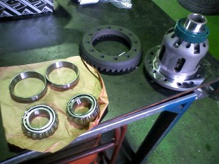 リングギヤ、スピードメーターギヤなどを付け替えサイドベアリング、Oリング、サイドオイルシールを交換します。