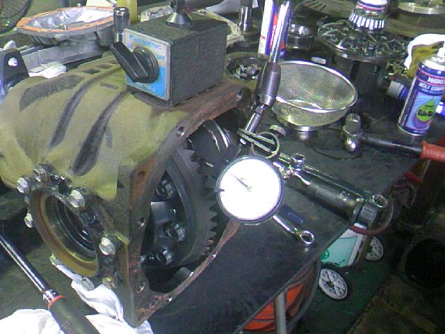 まずはファイナルを現状の3.769から80スープラの3.266へ変更します。LSDを組み替えてバックラッシュを調整して車輌へ搭載します(^^)