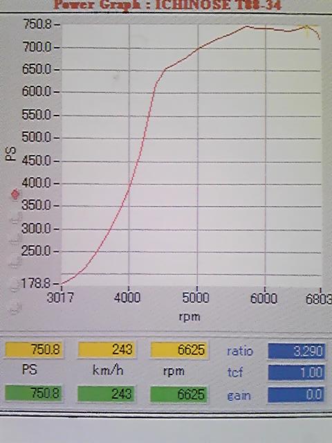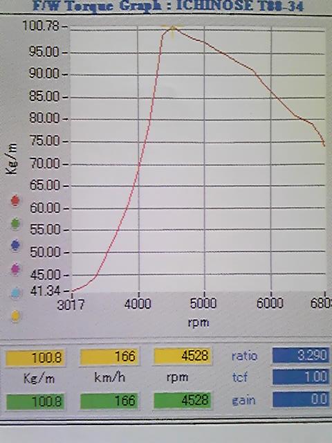 そしてセッティングをして行きます。オートマなので滑り率などを考えると参考値ですがトルク100.8Kパワー750.8PSでした!