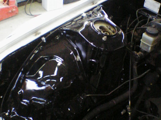 エンジンルーム、室内と塗装完了です!エンジンルームは赤かった事もありますがその他各部も、錆や劣化している所が見られましたのでそれらを修理しつつの塗装仕上げになります。