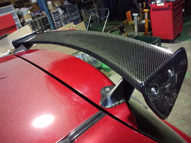 また、カーボンリヤウイング、カーボンボンネット、リヤバンパー、等を交換取り付けします。