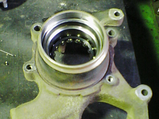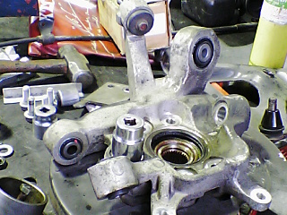 ハブベアリングも新品に交換します、ここもやはり磨耗が激しくガタも随分出ていました。