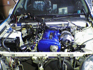 この状態から、タービンのシングル化によるパワステリザーバータンク、キャ二スター移動の為のステー加工製作、