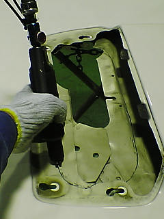 まずはノーマルダクトを外し、ボンネットを切削加工します。