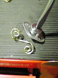 ズースファスナーとは左のスプリングに右のロッドを回して引っ掛けワンタッチで取り外し出来る様にする為の物です。