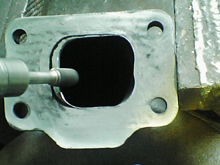 タービンのポートの大きさに合わせてエキゾーストマニホールドのポートを削っていきます。