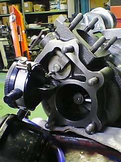 排気干渉を防ぎ、容量を稼ぐ為にタ-ビンアウトレットを交換します。