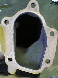 この段差をなくす為にエキゾーストマニホールド側のポート削って加工します。※ニスモ仕様やN1仕様のエキゾーストマニホールドのポートは始めから大きくなっています。