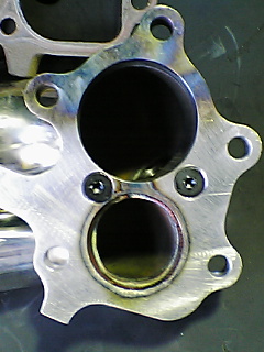 まずこの2枚を比較して欲しいのですが、上側がタービン側フランジで下側がエキゾーストマニホールドのフランジです。