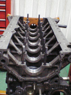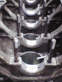 今回クランクシャフトの締め付けにはノーマルのボルトで締め付けるタイプではなく、スタッドボルト(両端にネジの切ってあるボルト)をシリンダーブロックに植え込み、ナットで締め付けるタイプを使用します。