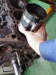 ピストンにピストンリングを組み付け、シリンダーに挿入します。