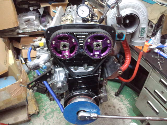 そしてバルブタイミングを調整しタービン廻りを組み付けエンジンカバー等を取り付けて行きます!