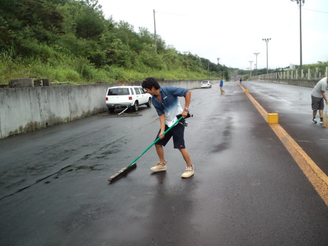 皆で雨かきをしたりぐるぐるコースを走ったりと懸命に乾かしにかかりました!