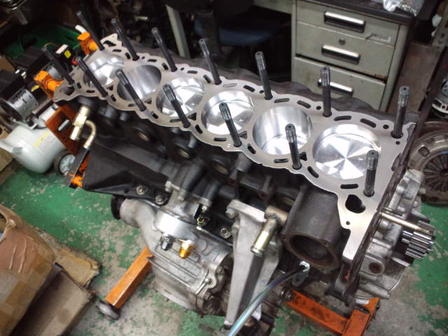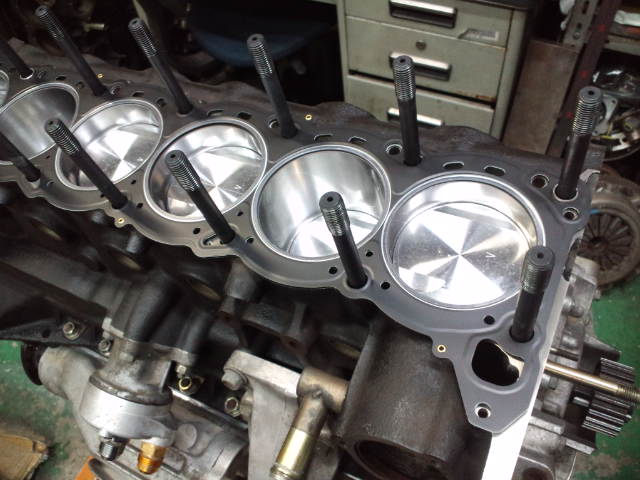 そしてHKSドラッグヘッドガスケットを取り付けヘッドボルトをスタッド式ヘッドボルトに変更してシリンダーヘッドをブロックヘ組み付けました!