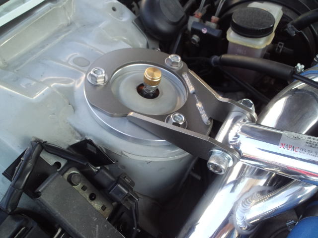 まずはトラスト製VマウントKITが装着されたこの車輌ですが購入されたクスコ製のタワーバーがパイピングに干渉してしまう為高さを稼ぐ為のスペーサーをワンオフ製作して取り付けます!