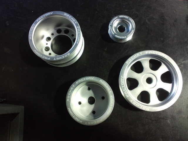 オルタネーター、ウォーターポンプ、パワステ、エキセントリックシャフト、各プーリーを軽量アルミ製へ変更します!^^