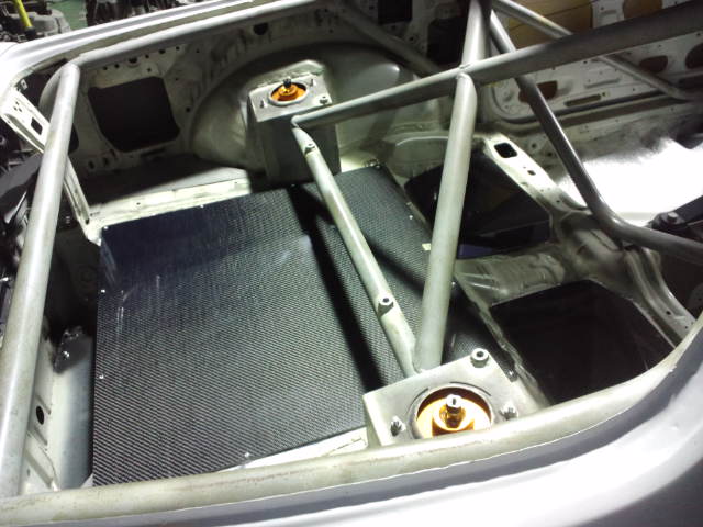 前回までの作業でJZA80スープラダッシュを形にしてFRPカバーのベースを製作して来ましたが今回はダッシュ貫通タイプのロールケージを取り付けした後のケージ部とドア内張り部のカバーの製作をS-Craft様にして頂きました!b(^^)