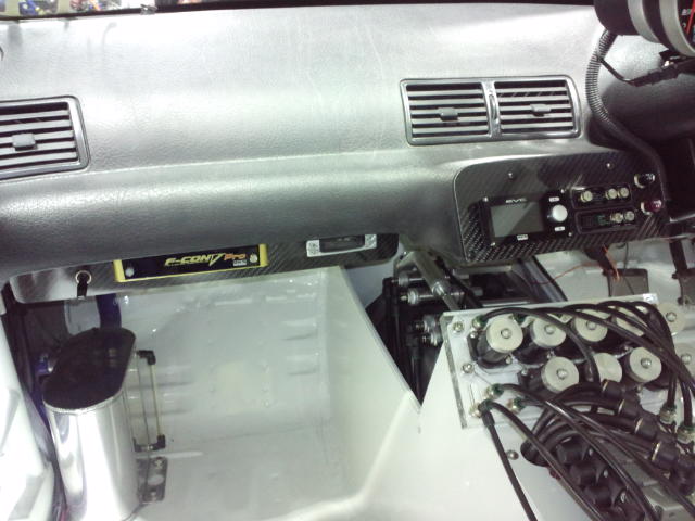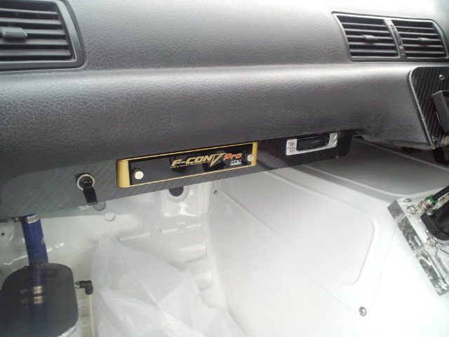 そしてエアコンコントロール部をもともとの位置へ戻し、EVCやテクトムIIC等もカーボンパネルを切り出して製作してセットしました!